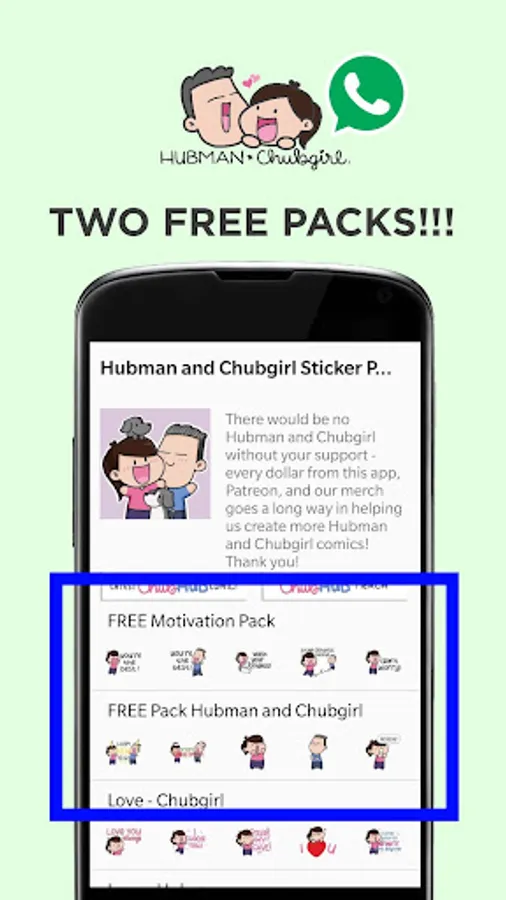 Official sticker packs for Hubman and Chubgirl. Now has over 100 stickers and is updated monthly! Includes a free sticker pack, the rest are purchasable by pack, or sign up on Patreon to get free packs!