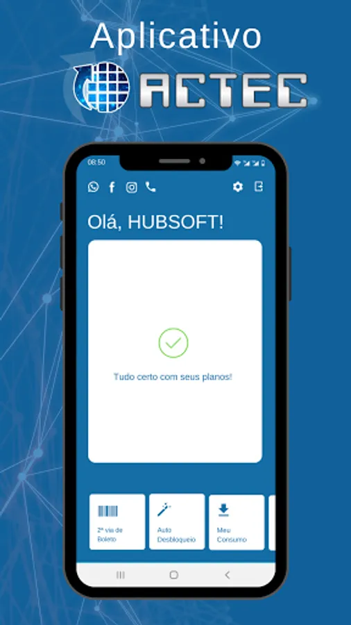 Application for ACTEC TECNOLOGIA customers, an easier way to manage your internet plan.