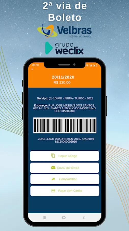 Velbras wants to always keep you connected and be closer to you! With this application you will have access to all the facilities of a connected company that prioritizes the quality of services and the well-being of its customers.