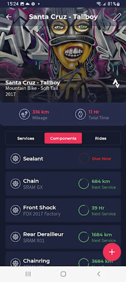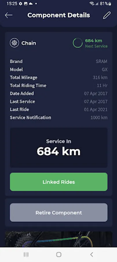 Track the mileage of every component on your bike so you know exactly when it needs to be serviced or replaced.