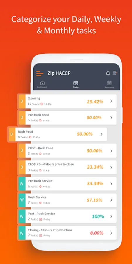 Zip HACCP places productivity in your hands. Manage your businesses’ daily, weekly and monthly checklists or view finished and unfinished tasks from the palm of your hands.