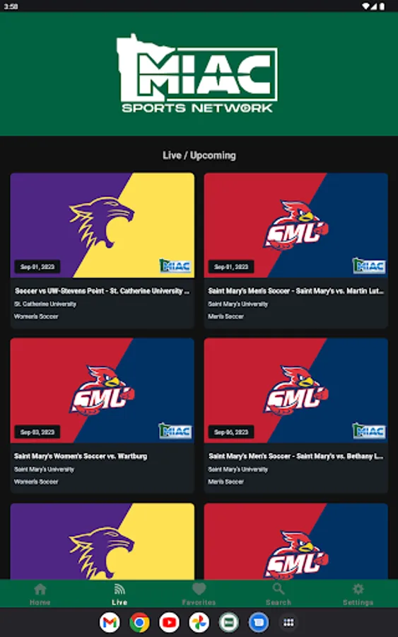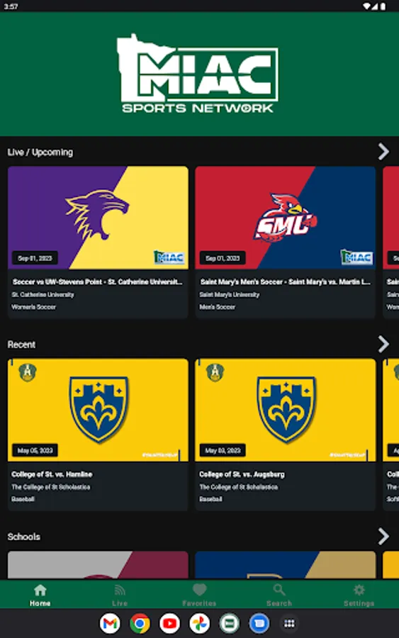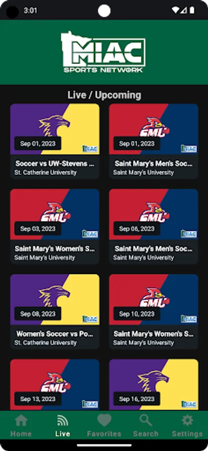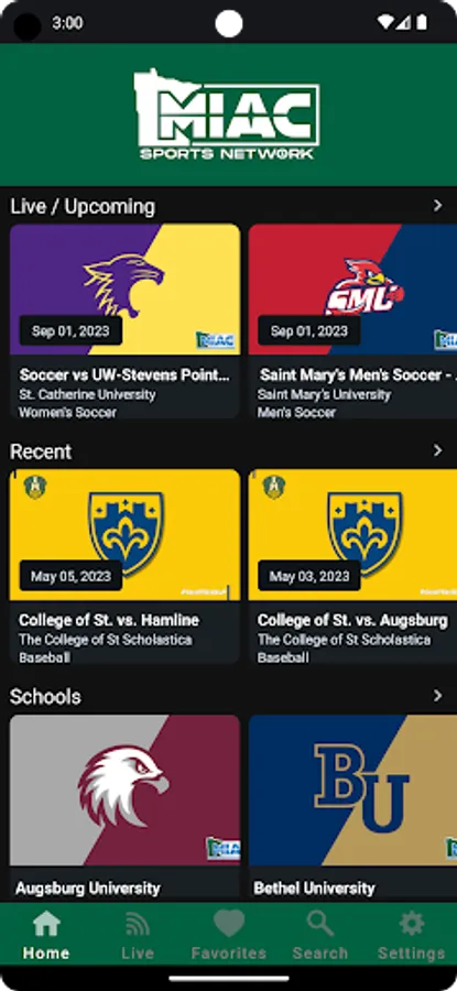 The MIAC Sports Network Android app gives you quick and easy access to your favorite Minnesota Intercollegiate Athletic Conference live and archived events. With broadcasts produced by the Minnesota Intercollegiate Athletic Conference and Minnesota Intercollegiate Athletic Conference member institutions, the MIAC Sports Network Android app is the go-to destination for Minnesota Intercollegiate Athletic Conference sports. MIAC Sports Network is a partnership between the Minnesota Intercollegiate Athletic Conference and Hudl