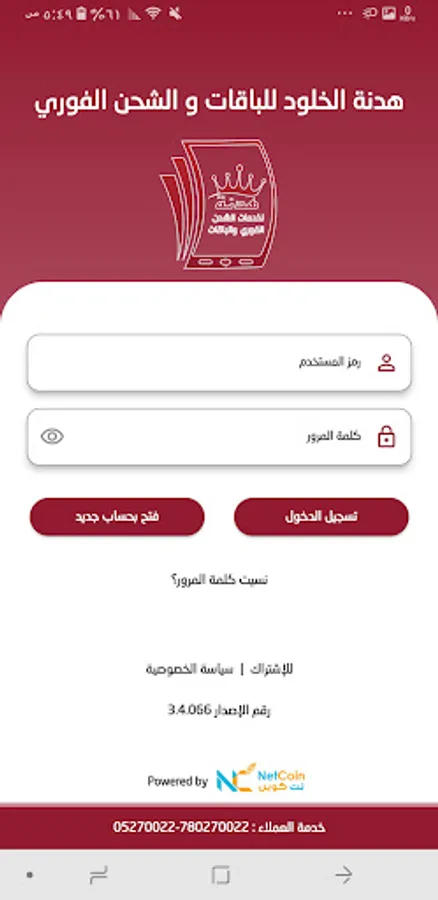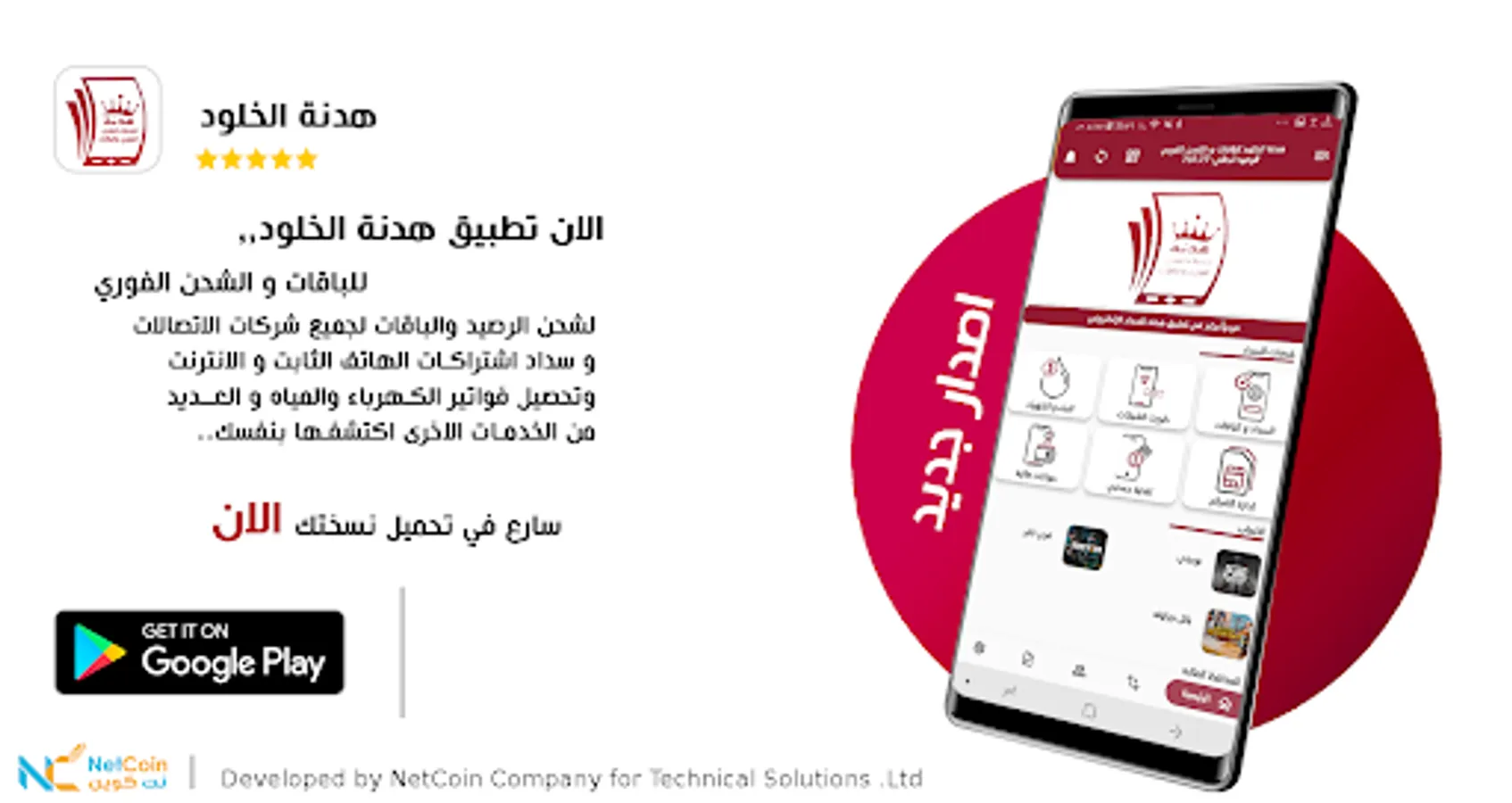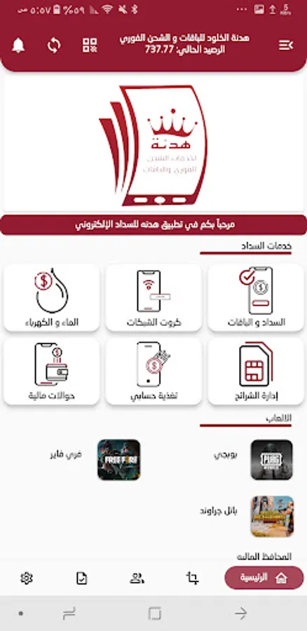 Out of excellence and continuous creativity, the Hudna application for instant charging services comes to you with its attractive interfaces and various services and the highest standards of performance, which enables you to pay phone and internet bills, water and electricity bills and many services