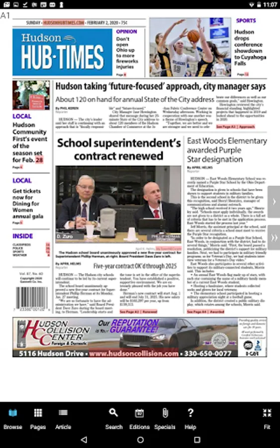 The Hudson Hub Times eNewspaper is an exact digital replica of the printed newspaper. Readers of the paper can flip through the pages, read stories, photos, and view ads just they appeared in print. The interface is designed for tablets and phones offering multiple viewing options including typical mobile views ideal for phone users. Interactive features allow you to share articles to your favorite social network, email articles to a friend, clickable web links, read aloud, offline reading and more.