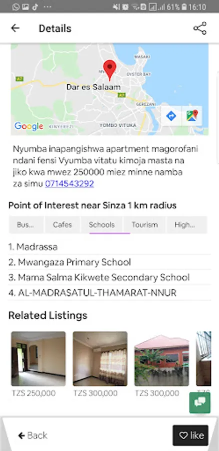 3. To help you make a decision buying or renting a property based on location, all the listings have nearby POI like schools, tourism, highway, and cafes.