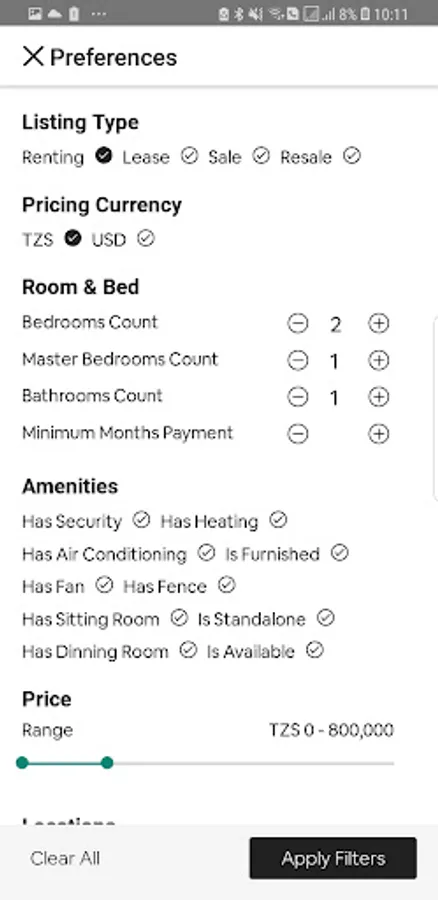 4. Filter listings per location, real estate agent, and amenities like electricity, wifi, water, heating system, etc.