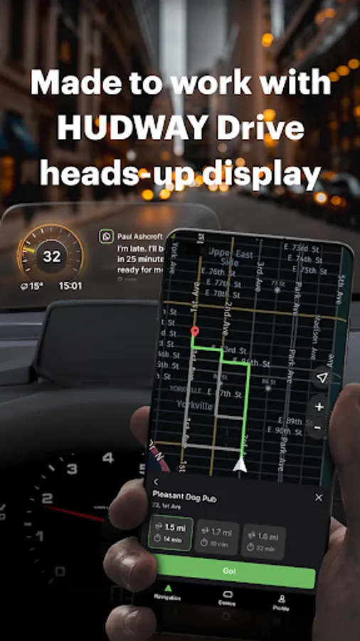 HUDWAY Drive is what makes navigation with a smartphone safer, more comfortable, and less-distracted.