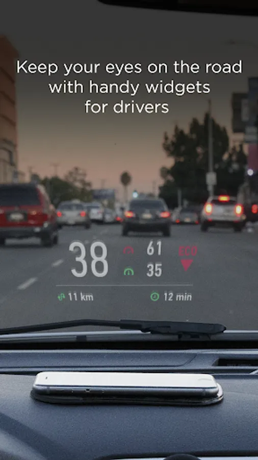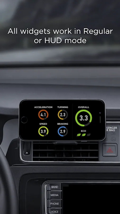 Launch the app, select the widget, and place the smartphone close to the windshield (to use it in HUD mode, with the screen image reflected onto the windshield), or fix it in the mount.