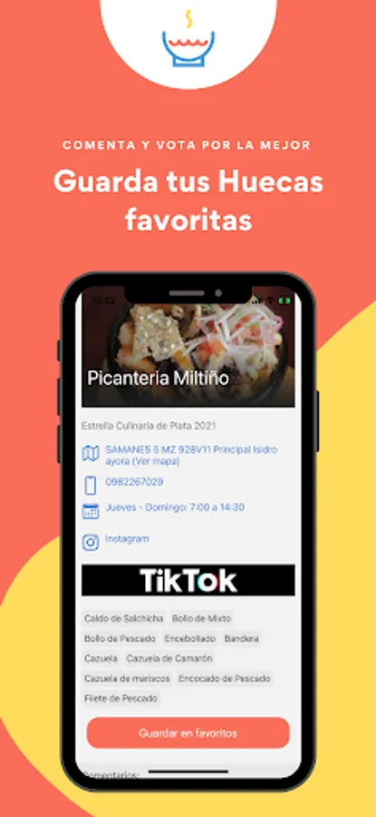 Huecas allows you to discover Huecas of typical Ecuadorian food near you. Save your favorite Huecas and comment on your experience.