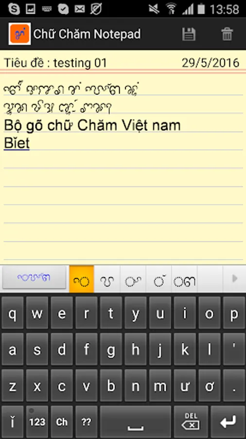Simple editor for Unicode Cham, Cham contains Unicode fonts available so no need to install fonts rooting Care.