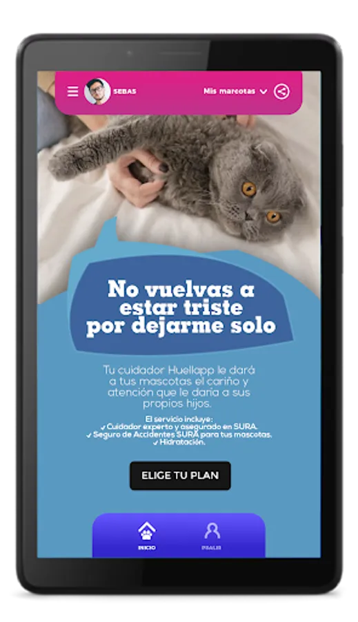 Huellapp is an Application for pet lovers, animalists, pet keepers and service providers for them, where they can find functions designed for the welfare of companion animals. Initially we will provide services in the main capital cities of Colombia and their metropolitan areas: Bogotá, Cali, Medellín, Barranquilla, Cartagena, Bucaramanga, Santa Marta, Bucaramanga, Ibagué Pereira, Manizales, Armenia, Tunja, Villavicencio and Pasto. The application has 4 functions: Pass me, Take care of me, which you can use individually through the purchase of service packages, to provide you and your pets with peace of mind and an unbeatable experience for opportunity and price. It also has a collaborative support network with the Find Me and Adopt Me functions. The download of the application is free, for a limited time. Pet walkers and caregivers will be able to use our application and generate income for their economy, by registering on our website: www.huellapp.co