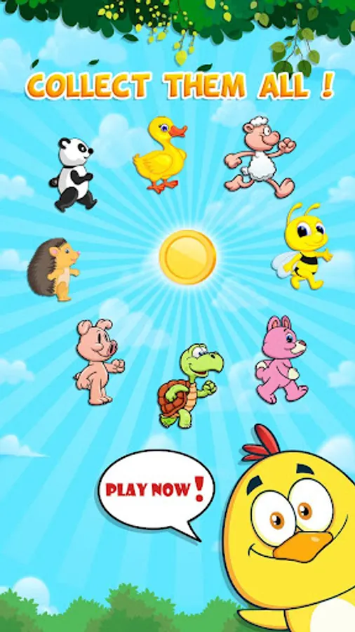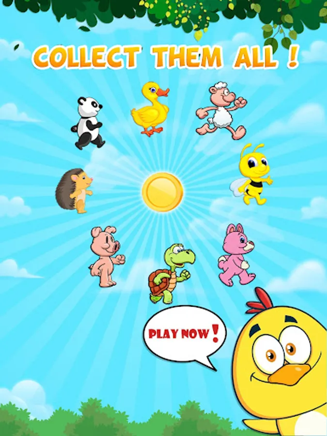 Animals: Chicken, sheep, turtle, rabbit, bear, duck, penguin, crocodile, bee.