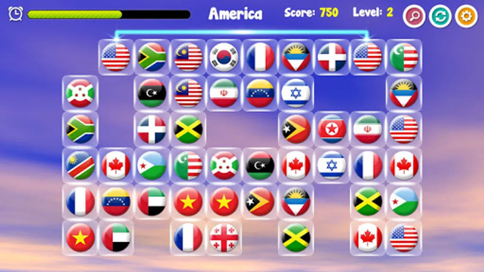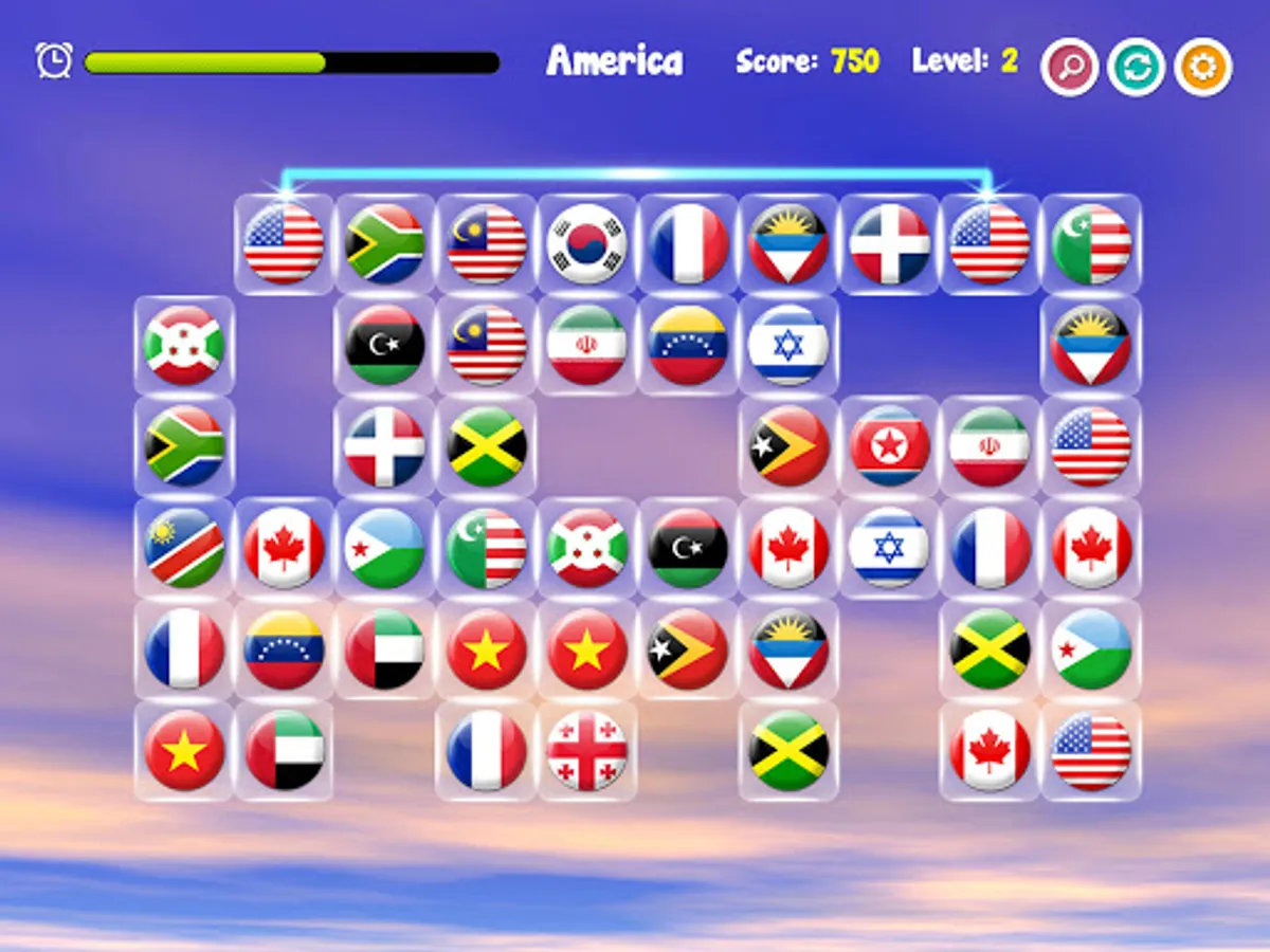 • Each turn starts with a fixed time. You must remove all the identical flags on the screen before the time runs out.