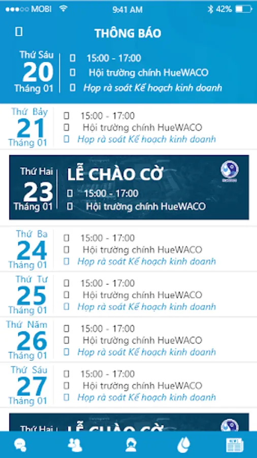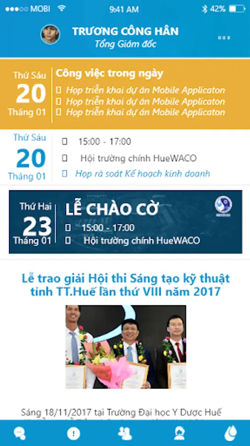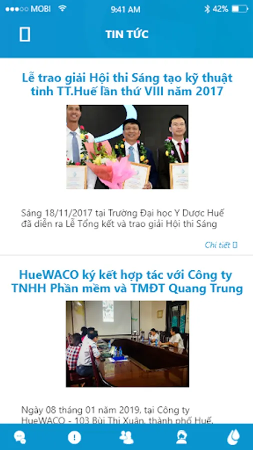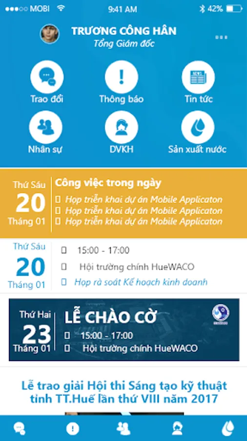 Operating support application of T..Hue Water Supply Joint Stock Company (HueWACO). Supported areas: Human Resource Management, Production Management, Customer Service, Exchange (chat) and internal (push notification) messages, news.