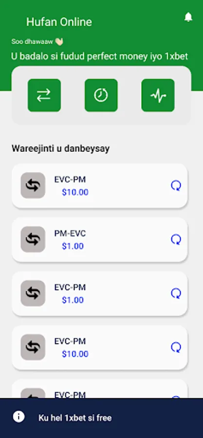 Hufan Online waa qaabka ugu sahlan eed u dhigan karto lacag kalana bixi karto 1xbet iyo perfect money