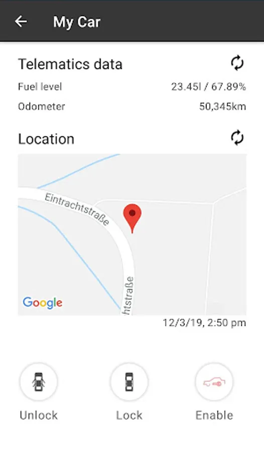 · Get the telematics data of your vehicles, incl. odometer, fuel level, position