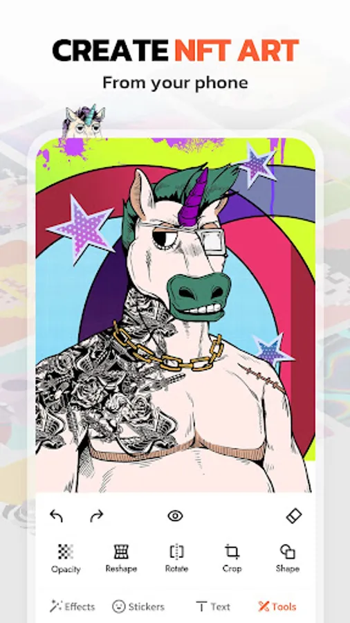 UniPixel likes a smart NFT wonder editor and ai art generator that provides special one-tap bayc effects to create intense visual conflicts in modern digital styles, making trending NFT collections in seconds. As the free NFT art generator, we hope that everyone can easily make their own NFT and pixelize photos as avatar with pixelme. Also, UniPixel dream AI painting to create goart, ai art generator and verisart like wombo dream by wambo art and starryai which can make dream wombo art. So UniPixel is like a magic eden and dream app in ntf, everyone can use it to create nfts and dream art as an nft editor and nft designer.
