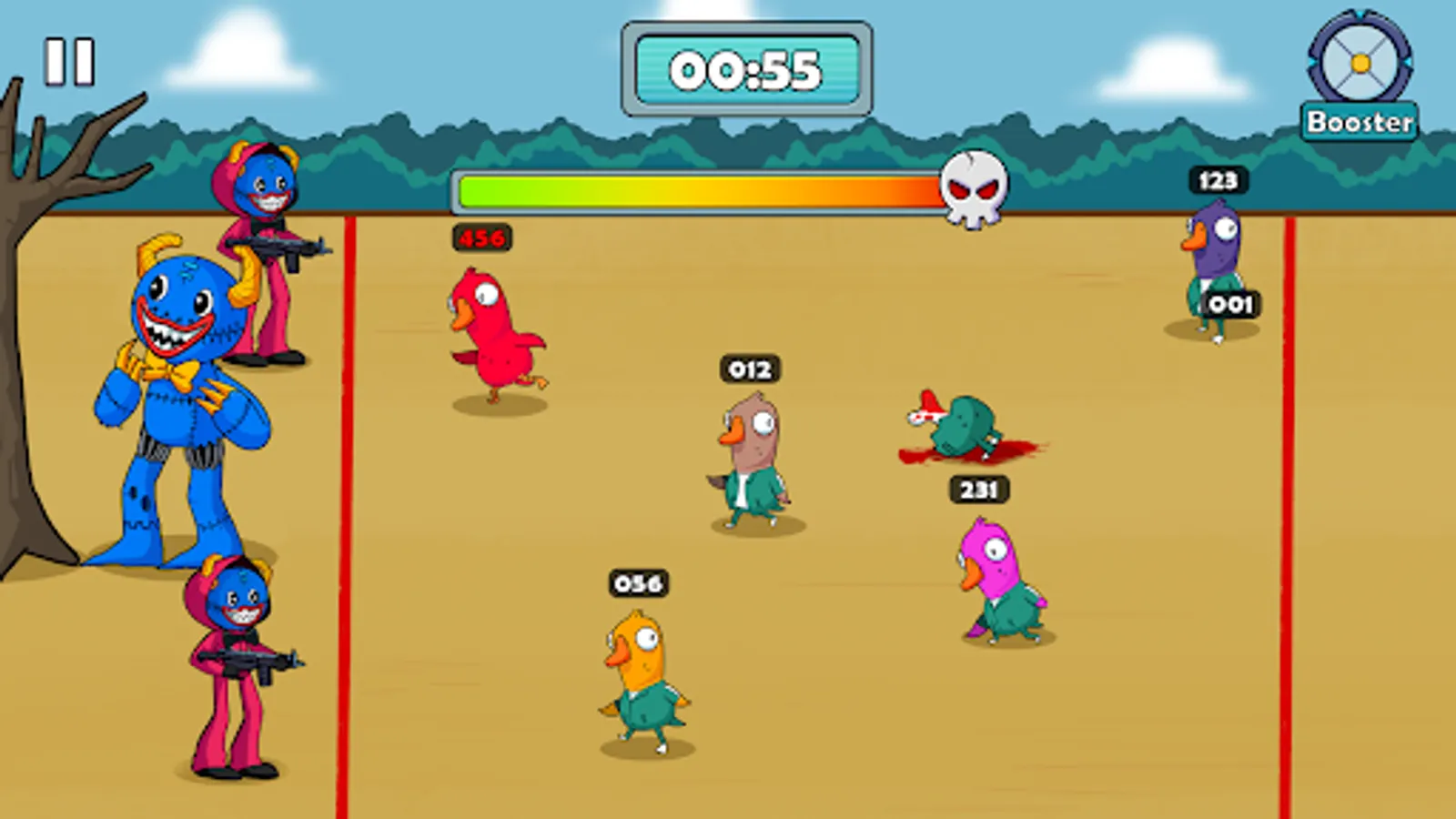 Join in the game, you will transform into a duck to compete with 455 other ducks 🐥. The reward for the last survivor is a huge amount of money and a cup to honor the winner. On the other hand, if you unfortunately lose at any level, you will be shot dead mercilessly! So be very careful ☠️