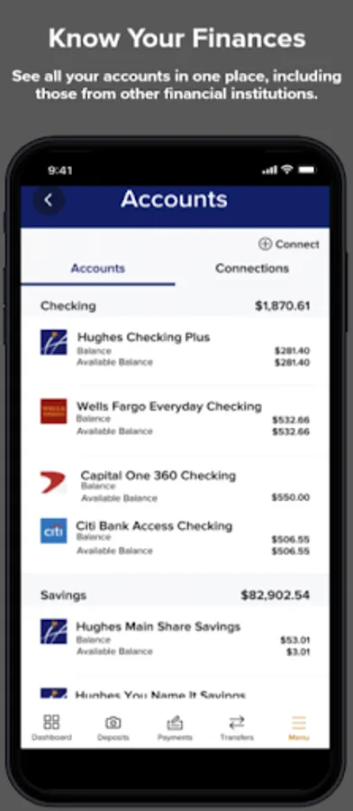 The Hughes app is designed with you in mind. Manage your accounts, make internal and external transfers, send money with Zelle®, pay bills and budget for the future all within the app.