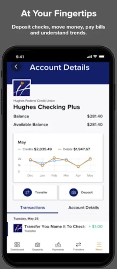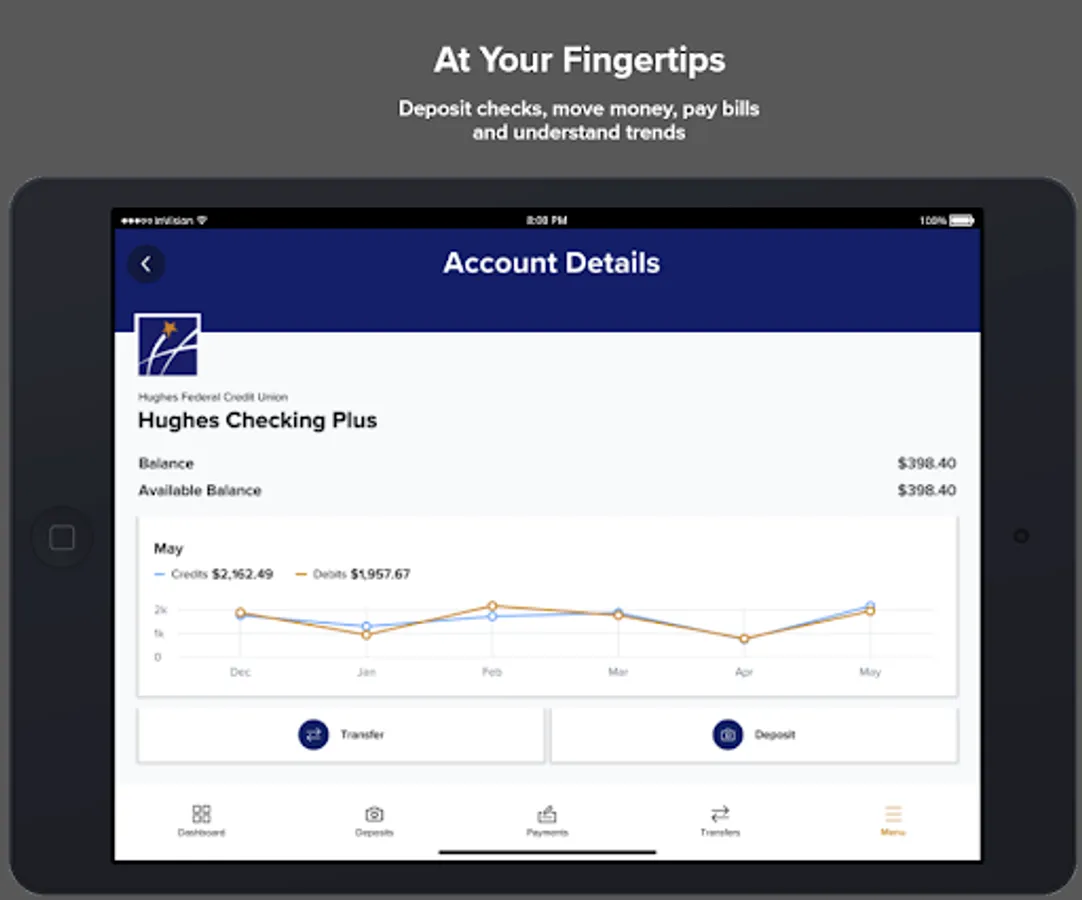 Experience your finances like you never have before with the help of Hughes Federal Credit Union.