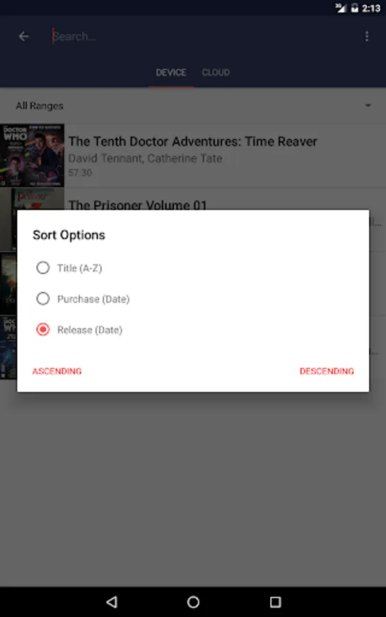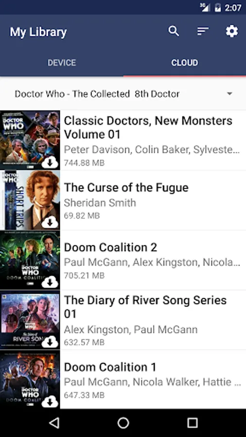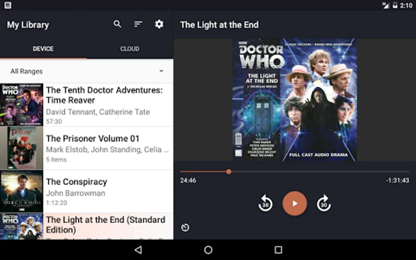 Download and store your library of Big Finish audio files on your Android device. Listen to great stories from the following ranges wherever you are: Doctor Who, Sherlock Holmes, Blake's 7, Dark Shadows, 2000 AD (Judge Dredd and Strontium Dog), Terrahawks, The Avengers, The Prisoner, Torchwood, Survivors, The Omega Factor and more.