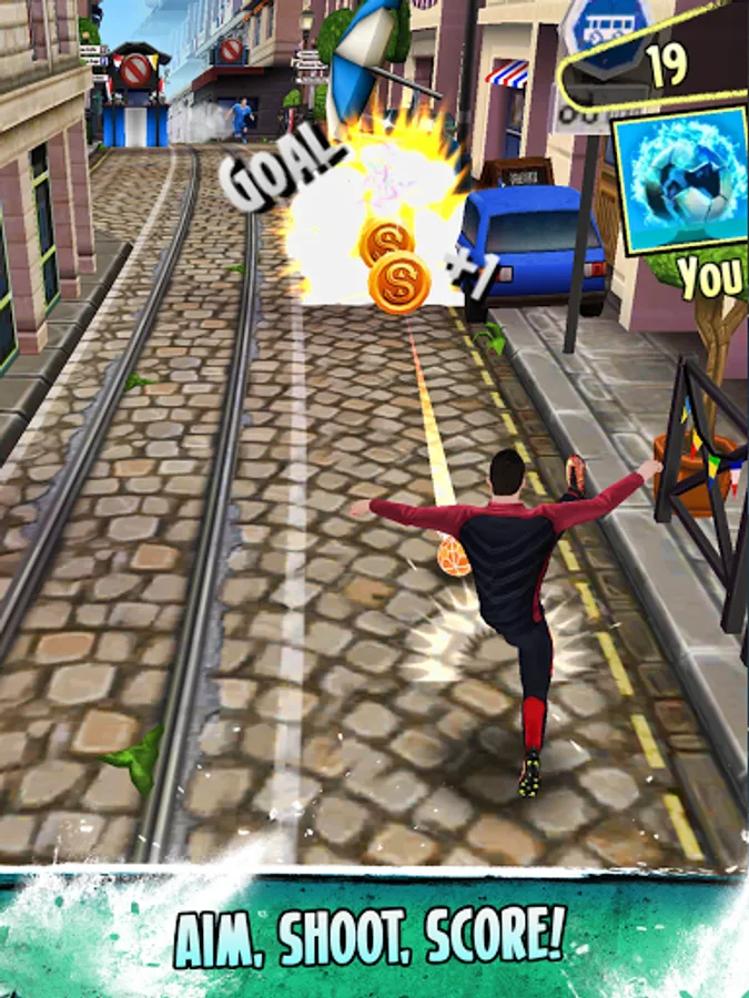 How would you like to be in the shoes of Cristiano Ronaldo – one of the world’s top football players? See how it feels to Kick, Run, Dribble and Score like the Man UTD player in this unique 3D arcade runner! Put on your boots and surf through traffic in the streets of Paris, strive to get the highest scores in intense competitive football games and you might even find yourself competing against none other than the real Cristiano Ronaldo!