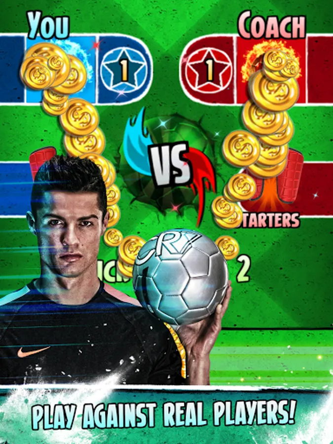 Go head to head against real players from all over the world in 1v1 online multiplayer football games for great prizes! Score the most points, climb the ladder of the competitive leaderboards and become the ultimate football star by sharpening your running and shooting abilities like CR7!