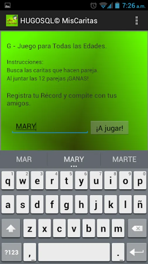 My Caritas is a game for all ages, easy to learn and easy to use. Just write down your player name and look of each image their partner in the shortest time possible. When finished, save your time and will get you in the log leaders. My Caritas is a game that takes up little space and resources for your phone and tablet, ideal for spending time without complications.