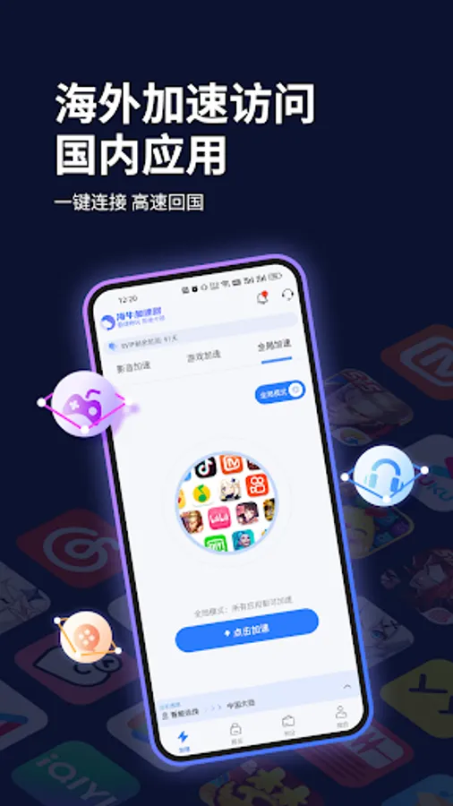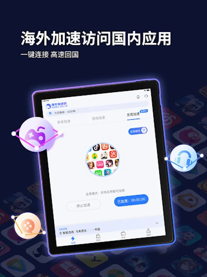 Manatee Accelerator is an acceleration software for returning to China, which can help overseas Chinese accelerate games, music, videos, live broadcasts, and websites on the national server, effectively reduce game lag in the national server, watch live video smoothly, etc., and return to China at high speed with one-click connection.
