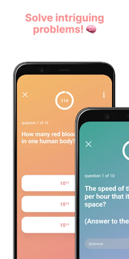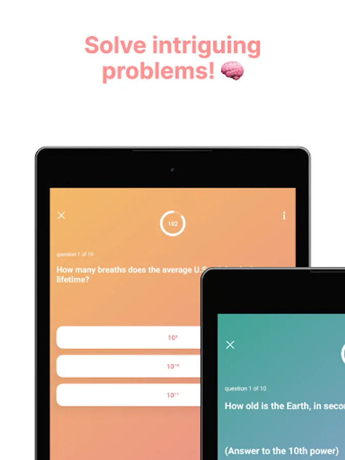 An app to determine how good your estimation and problem solving skills are. This includes three different difficulties: Easy, Casual, and Advanced. You may find many similar questions asked in real competitions which is quite useful as this app will give you an advantage among peers. If you have any further questions or suggestions for the improvement, please feel free to contact our email which is located at the bottom of our privacy policy page.