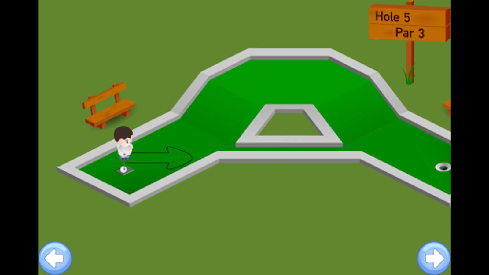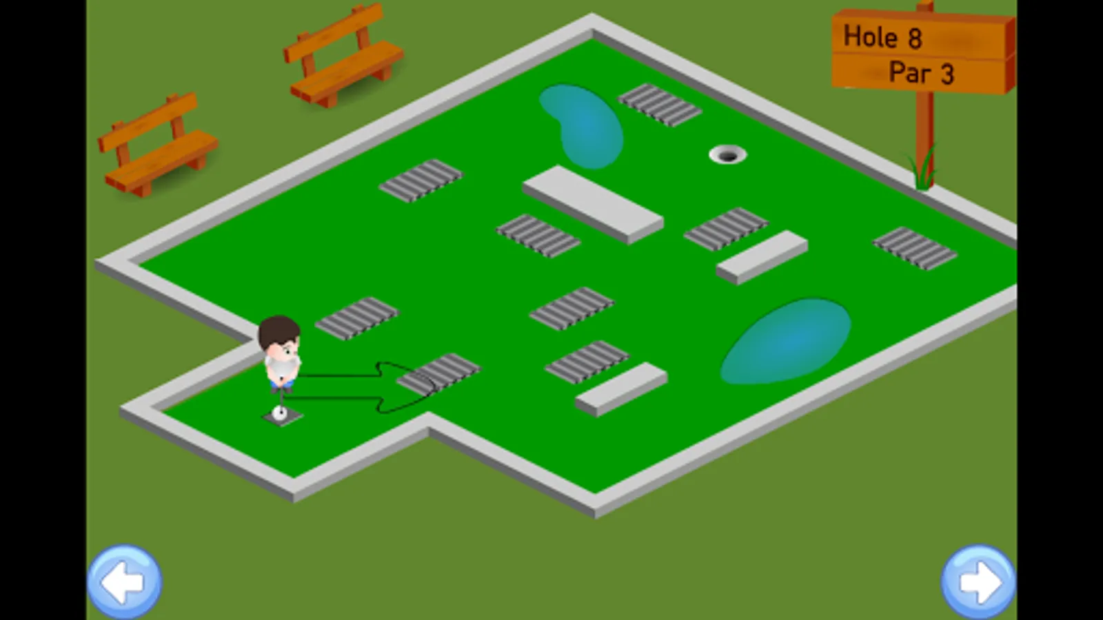 Enjoy and play mini golf game in a cartoon style! Complete all 18 holes, and see if you score the best in this fun cartoon Pocket Golf game. In top view carton style, enjoy putting the green in this obstacle laden mini golf course. Bring out the golfer in You in this exciting mini golf game. It's perfect to relax on the green after a day of hard work or play. Avoid the obstacles, find the shortest and easiest path to the hole. Just make sure your ball finds the hole with the flag in this awesome beautiful Mini Golf game.