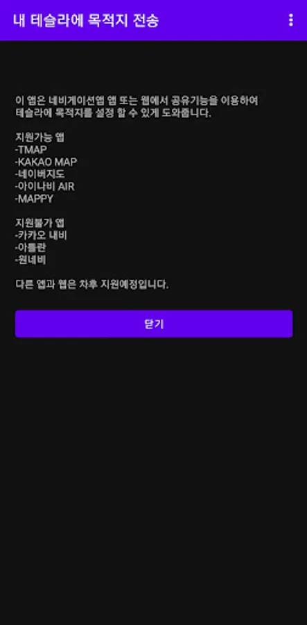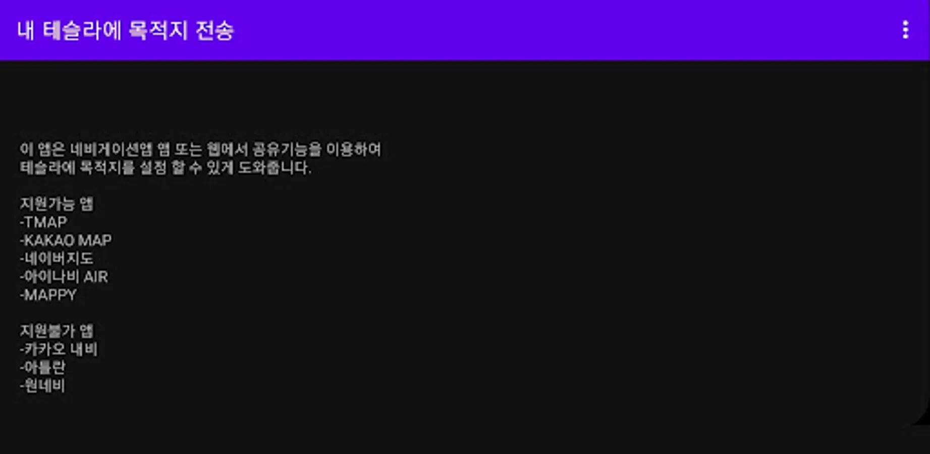 This app helps you to set a destination on your Tesla using the navigation app or share function on the web.