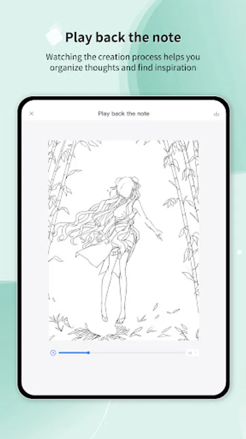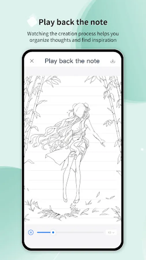 - Record the creation process of a note and save it as a video in the album of your phone for you to review at any moment and organize thoughts.