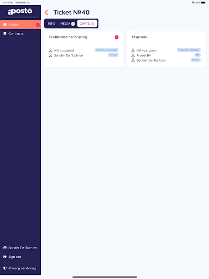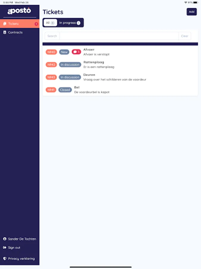 -> Aposto offers a ticketing system so that questions, maintenance notifications and other matters can be received, registered and dealt with in an efficient manner.