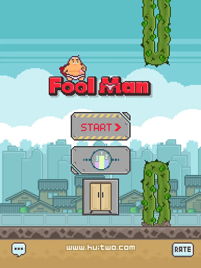 The player in the game controls a squabby fool superman to fly over barriers that formed by all kinds of cirrus and collect his missing underwear. However, this fool superman is too fat to fly…Therefore, the fool superman can fly a little higher when the player click on him once. And he will go down without clicking. The player must control the rhythm and master the time of clicking screen. Let the fool superman can fly at the fallen moment, as well as help him to shy away from cirrus and collect the underwear. He will dead as a door nail at the drop of a hat, as long as a little distracted.