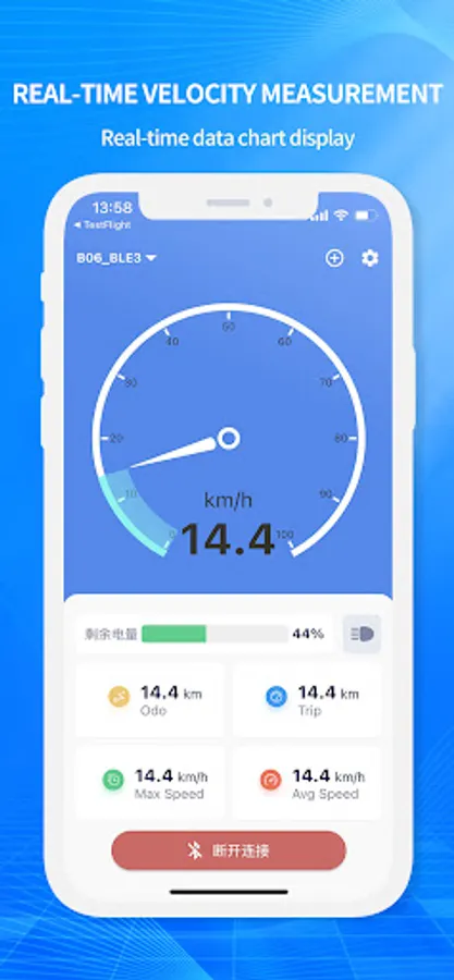 1. Synchronize bicycle riding information through Bluetooth communication and display it on the app's speed dashboard.