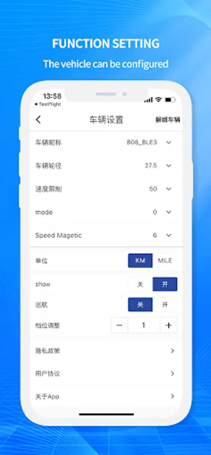 2. Control bicycle components, such as headlights and speed range, through the app.