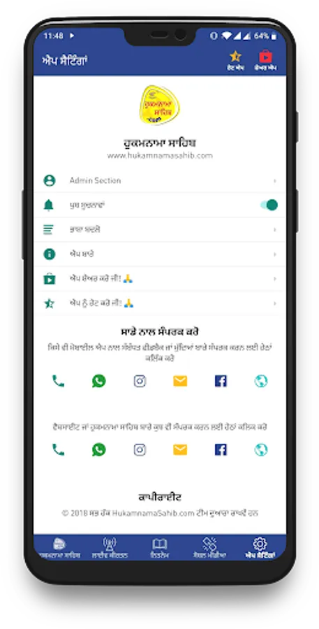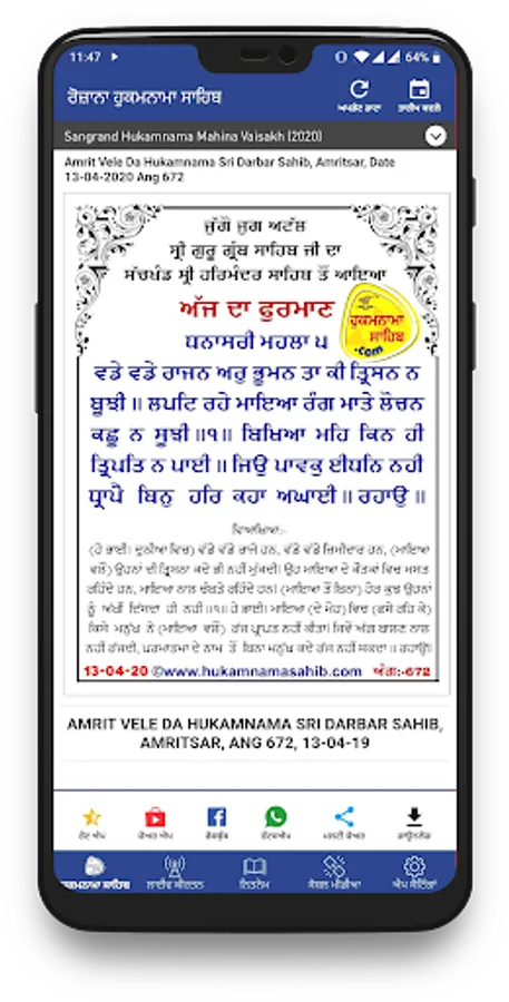 👉 Sharing Feature – Various Buttons added in Hukamnama Sahib Tab to share Image of Hukamnama Sahib easily with one click through various social networking channels like Facebook, Whatsapp, Twitter, Instagram etc.