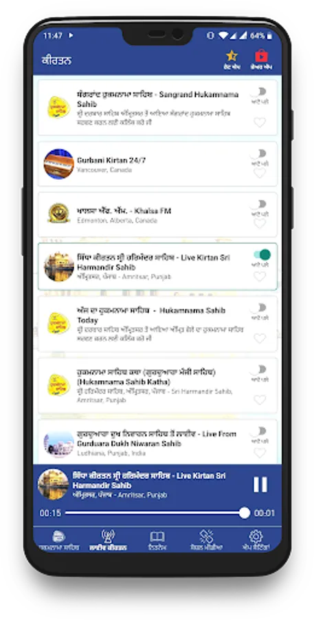 👉 Auto Play Live Kirtan – An option is provided in app settings tab to enable/disable auto play live kirtan.