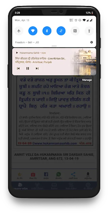 Hukamnama Sahib Application is designed and developed with aim to provide Daily Hukamnama Sahib and Live Kirtan Streaming on your mobile. This application is freely available on play store. Read the Daily Hukamnama from Sachkhand Sri Harimandir Sahib Amritsar in Gurmukhi, Punjabi, English and Hindi Language right within the application.