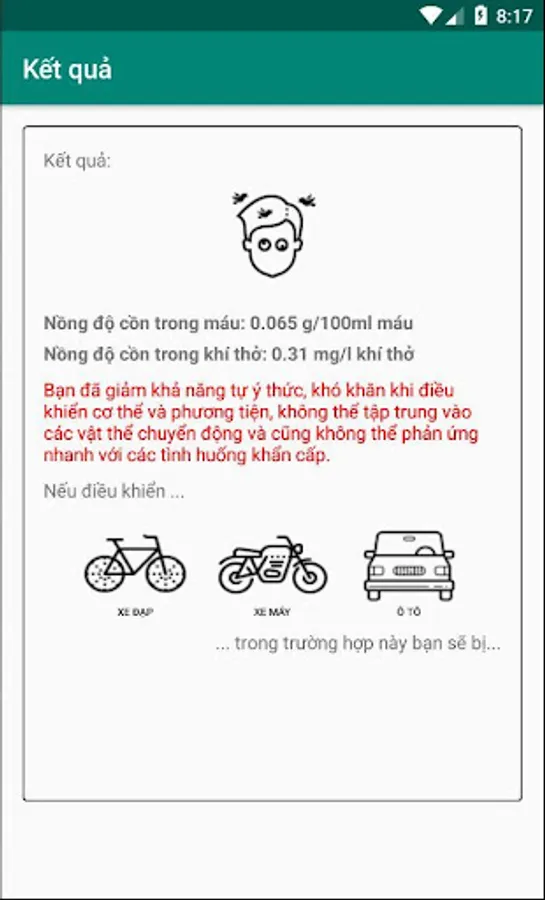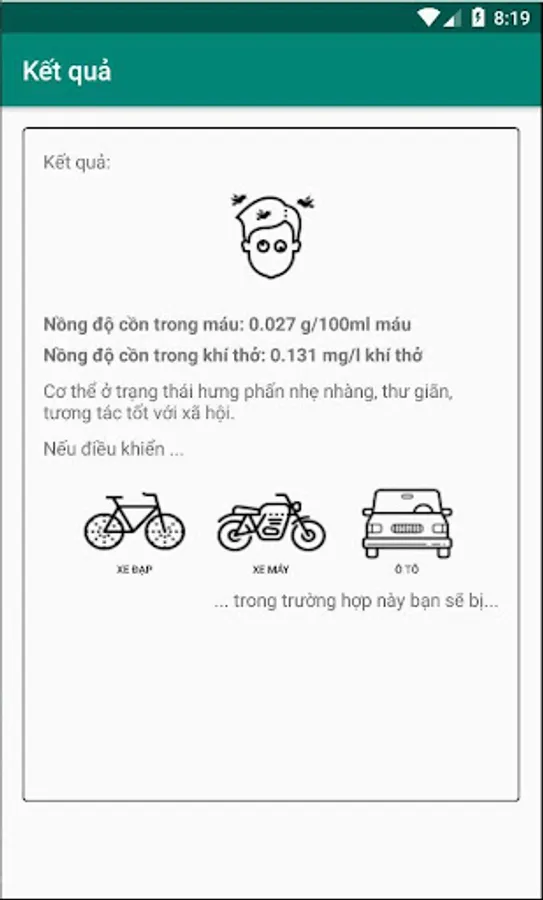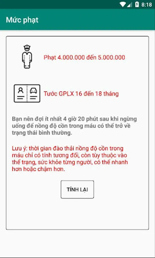 • Relative time to eliminate the concentration of alcohol in the blood.