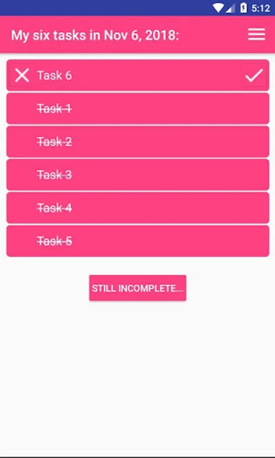 • Approach the rest of your list in the same fashion. At the end of the day, move any unfinished items to a new list of six tasks for the following day.