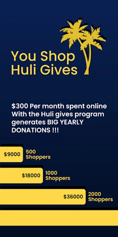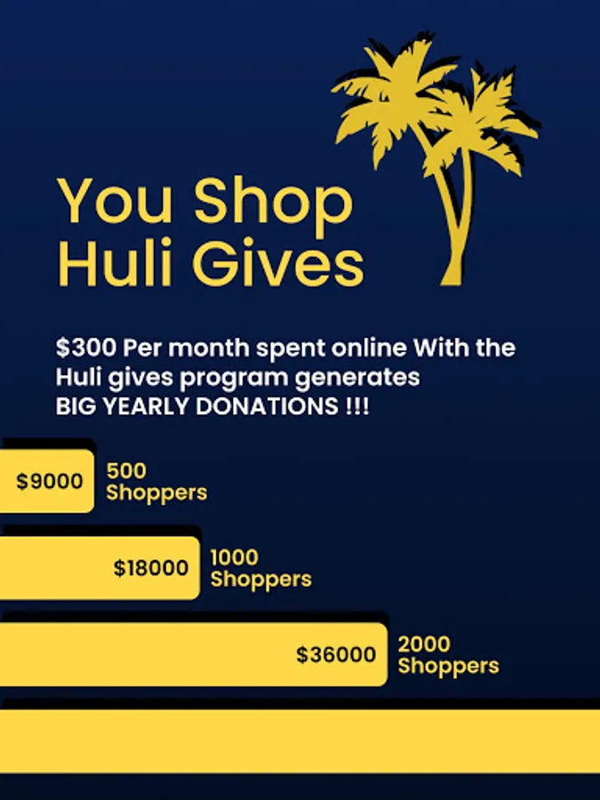 The Huli Gives App is a great way to support your non-profit, with easy mobile cash back shopping that is paid directly to your selected Non-Profit.