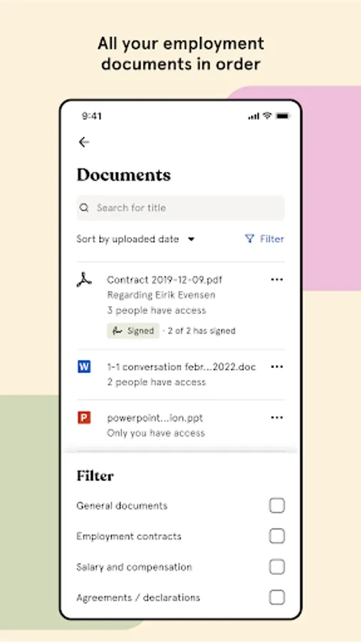 - All employee information and documents, whether related to a single employee or the entire organization.