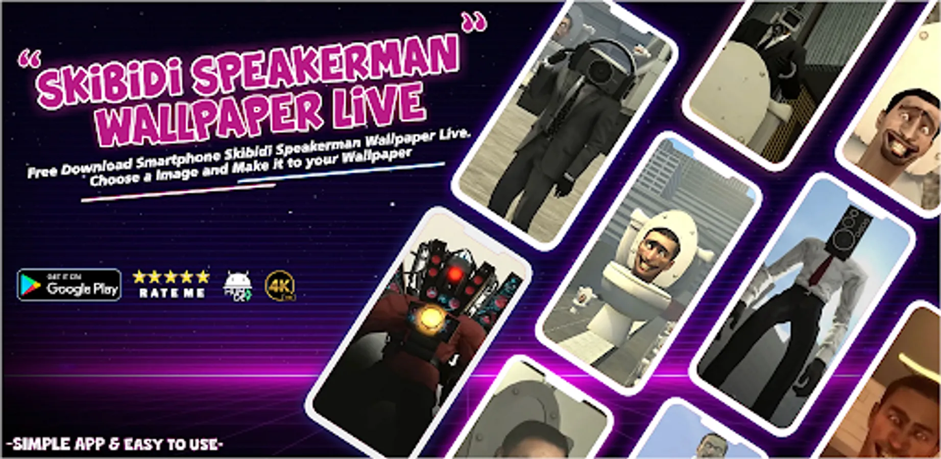 Skibidi Speakerman Wallpaper Live 4K Fitur: