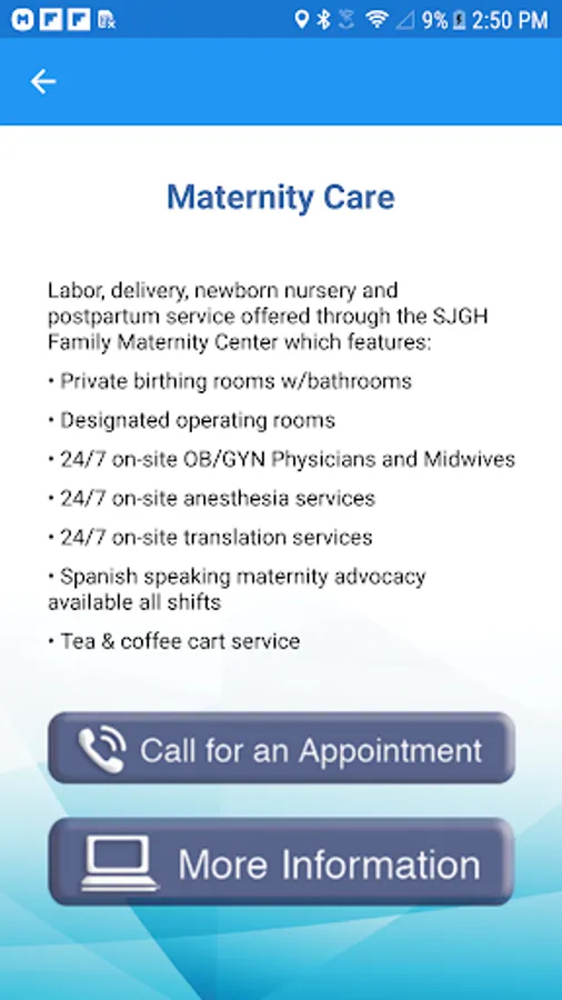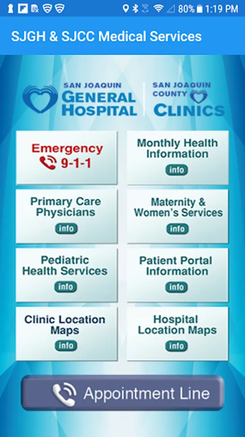 San Joaquin General Hospital is a regional acute care hospital with primary medical care clinics. This app directs the user to the hospital and clinic services.