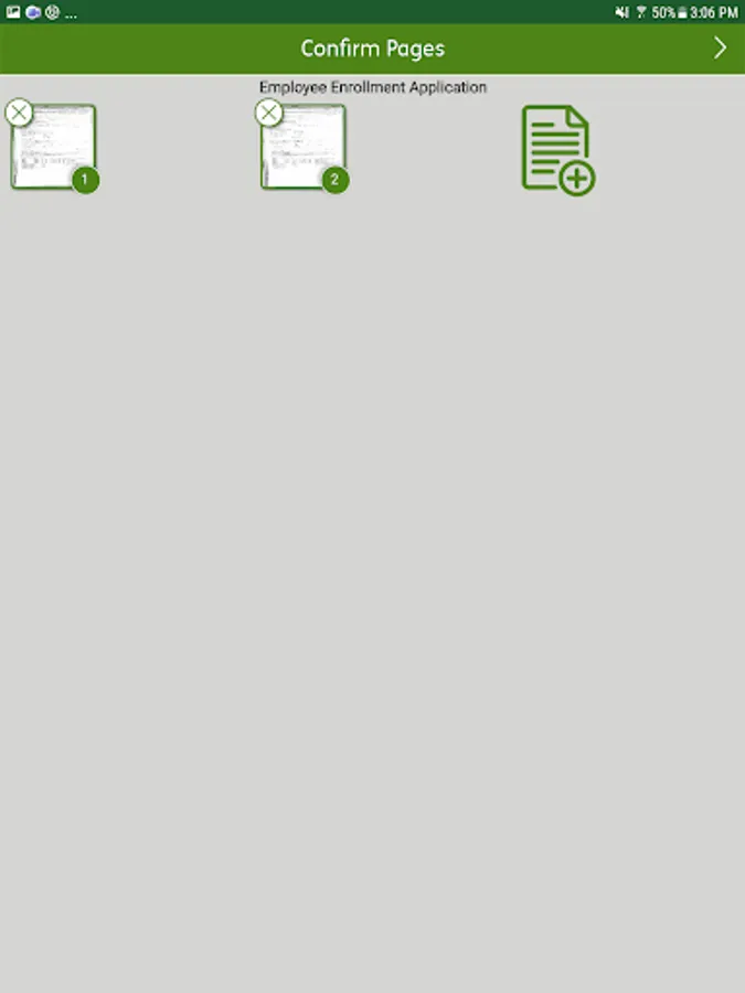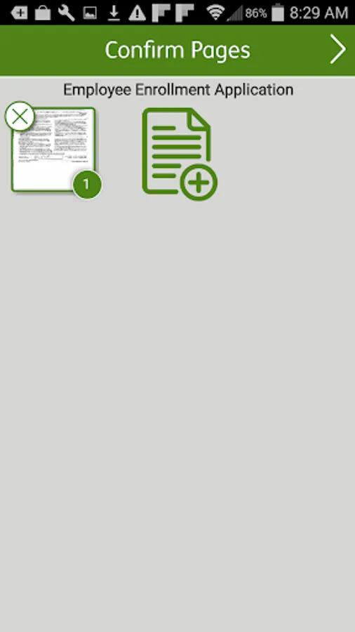 • Crop and adjust the brightness of each page of your document and Confirm Pages or add a Page by pressing the Page icon.