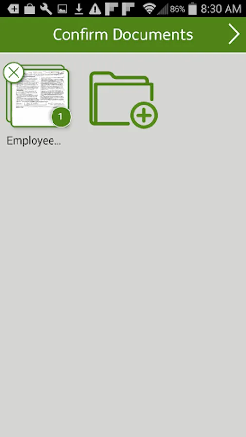 • Add any additional documents (up to a maximum of 5 separate documents) to be sent at the Confirm Documents screen by pressing the Document icon.