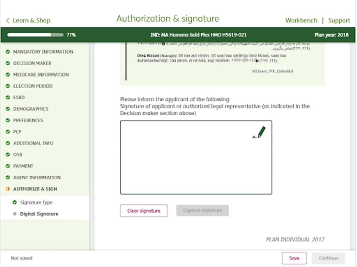 Enrollment HUB is a streamlined paperless application that allows agents to complete Humana and CarePlus applications for both Connected and Offline Enrollments for the following product lines; Medicare Advantage / Medicare Advantage & Prescription Drug / Prescription Drug Plans / Dental & Vision / Medicare Supplement. With Enrollment HUB you can securely store, transmit and track client enrollment information directly with Humana. It’s compatible across multiple web browsers and devices and allows the reuse of consumer data to reduce manual entry by agents so you can spend more time selling.
