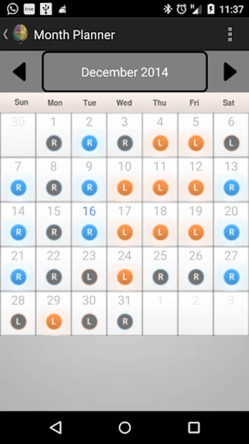 The app algorithm will use your location data to calculate the Lunar Tithi (day), find the Sunrise time for your location, the "Swara" sequence and calculate the dominant breath at sunrise. Clicking on the brain gives you the activity list for the day!